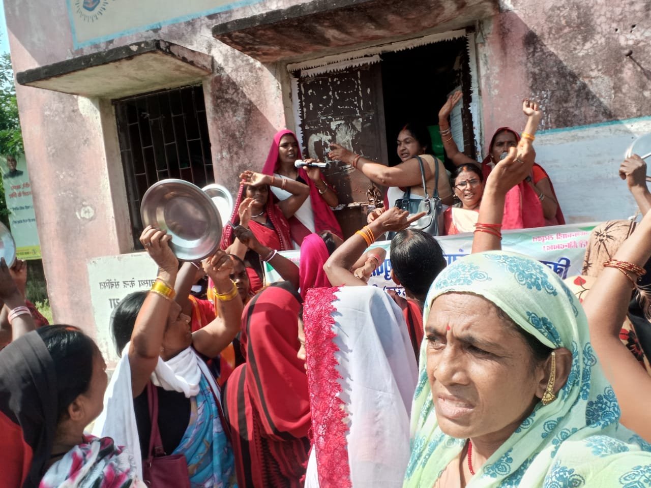 The star india kaimur: रामपुर प्रखंड क्षेत्र के आंगनबाड़ी सेविका सहायिका बिहार राज्य आंगनवाड़ी संघर्ष समिति के आह्वान पर प्रखंड मुख्यालय स्थित बाल विकास परियोजना कार्यालय के पास क्षेत्र के सभी केंद्र की आंगनवाड़ी सेविका सहायिकाओं द्वारा अनिश्चिकालीन हड़ताल के 13 वें दिन प्रखंड के बाल विकास परियोजना प्रांगण में आगनवाड़ी कार्यालय के समक्ष धरना दे रही है. जिसकी अध्यक्षता संगीता कुमारी व संचालन रीना देवी ने की .धरना के 13वें दिन प्रखण्ड पर थाली बजाई सेविका सहायिका के हड़ताल का समर्थन किया . वही मुखिया प्रतिनिधि संजय राम ने कहा की सेविका सहायिका कर्मी में निचले टपके की कर्मी में आती है लेकिन सरकार द्वारा संचालित आंगनवाड़ी केंद्र के साथ साथ अन्य कई योजनाओं में इनसे कार्य कराया जाता है जब मैं और मेरा समिति सभी मुखिया इनके अनिश्चित कालीन हड़ताल का समर्थन करता है समर्थन किया गया.वही उसके बाद अध्यक्षता कर रही संगीता कुमारी द्वारा 20 सूत्री मांगो का सेविका सहायिका द्वारा सरकार के खिलाफ जमकर नारेबाजी की जा रही है..सेविका सहायिका नारेबाजी के दौरान मुख्यमंत्री नीतीश कुमार हाय हाय, हमारी मांगे पूरी हो,हम भारत की नारी है,फूल भी चिंगारी है. जहा न जाए कोई गाड़ी वहा जाए आंगनवाड़ी सहित कई प्रकार की नारे लगा रही थी. उनलोगो का कहना है की जबतक सेविका सहायिका को मांगे पूरी भी होंगी हमलोग की अनिश्चित कालीन हड़ताल जारी रहेगी .इस मौके पर सेविका सुशीला देवी, सोनाली कुमारी लालती देवी, प्रीति कुमारी अंबी खातून सहित दर्जनों आंगनवाड़ी सेविका सहायिका और मुखिया प्रतिनिधि संजय धरना में शामिल रहे.