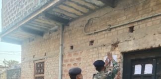 प्रशासन ने चिपकाया फरार अपराधी के घर पर इश्तेहार