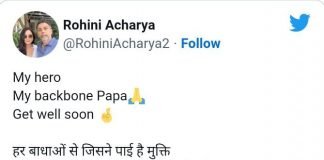ICU में लालू….तस्वीर शेयर कर इमोशनल हुई बेटी रोहिणी. लिखी पापा मेरे हीरो