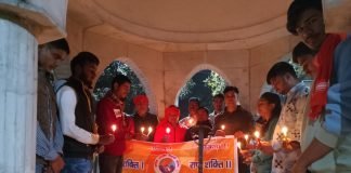 पुलवामा अटैक मे शहीद वीरों को श्रद्धांजलि दिए एबीवीपी छात्र