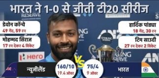 भारत न्यूजीलैंड के बीच तीसरा टी20 DLS के तहत टाई, 1–0 से भारत ने जीता...