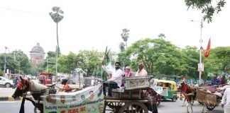 सासाराम से राजद विधायक राजेश गुप्ता ने बैलगाड़ी पर सवार होकर जताया महंगाई का विरोध