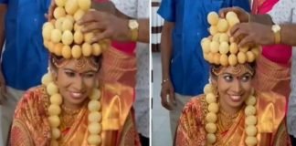 जब दुलहन ने शादी के समय पहना गोलगप्पे का मुकुट और माला।
