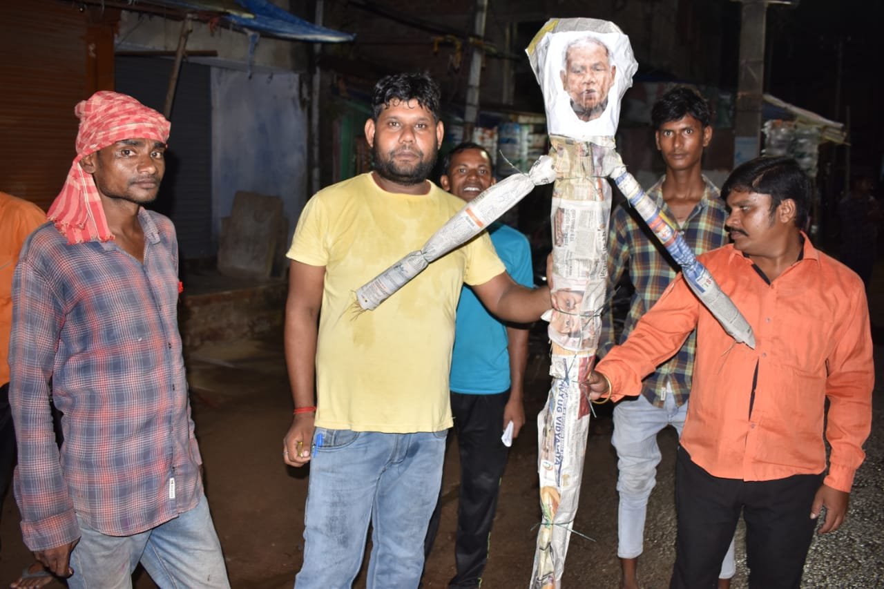 भगवान राम को लेकर बिहार के पूर्व मुख्यमंत्री जीतन राम मांझी के द्वारा दिए गए विवादित बयान के विरोध में समता पार्टी ने जमुई जिला अंतर्गत झाझा दुर्गा मंदिर के पास बिहार के पूर्व मुख्यमंत्री जीतन राम मांझी का पुतला फूंका। पार्टी के युवा जिला अध्यक्ष गौतम पटेल के नेतृत्व में पुतला दहन किया गया जहाँ जम कर जीतन राम मांझी मुर्दाबाद के नारे लगे वहीं समता पार्टी जिन्दाबाद और उदय मंडल जिंदाबाद के नारे भी लगे।भगवान राम के अपमान को लेकर जनता में काफी आक्रोश देखा जा रहा है। वहीं समता पार्टी के राष्ट्रीय महासचिव उदय मंडल ने पहले ही साफ कर दिया है कि जबतक जीतन राम मांझी जनता से माफी नही मांगेंगे तबतक विरोधी जारी रहेग। वहीं बीजेपी पर भी सवाल उठाया है कि राम नाम पर राजनीति करने वाली बीजेपी जल्द से जल्द जीतन राम मांझी को NDA गठबंधन से बाहर करें।