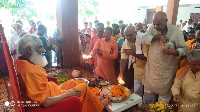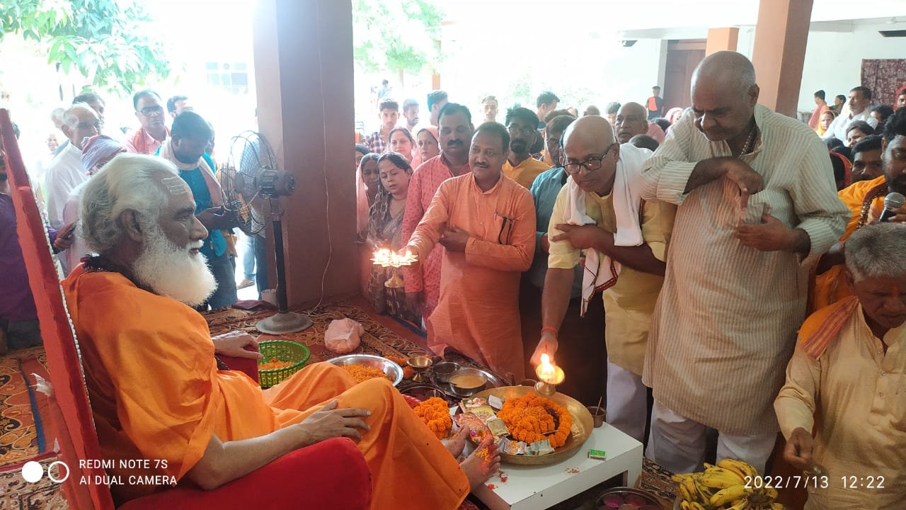 The  स्टार इंडिया सासाराम: आज दिनांक 13/07/2022 को गुरु पूर्णिमा के पावन अवसर पर महर्षि अंजनेश आश्रम,ताराचण्डी धाम,सासाराम में महर्षि विश्वामित्र मुनि गुरुपीठ व्यास गद्दी पर विराजमान जगतगुरु स्वामी अंजनेशानंद सरस्वती (महर्षि अंजनेश जी) का उनके भक्तों एवं शिष्यों के द्वारा बड़े ही हर्षोल्लास के साथ धूमधाम से पूजा अर्चना कि गई।