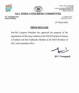 The स्टार इंडिया गया:बिहार के एक गांव पहाड़पुर (गया) के साधारण किसान परिवार से निकल कर जेएनयू तक का सफर तय करने वाले सुधांशु शेखर को देश के सबसे बड़े छात्र संगठन एनएसयूआई के जेएनयू प्रदेश का अध्यक्ष बनाया गया। कैंपस में अभी जेएनयूएसयू के चुनावों की घोषणा होने वाली है और उसके मद्देनजर कांग्रेस आलाकमान का यह निर्णय अत्यंत महत्वपूर्ण है।