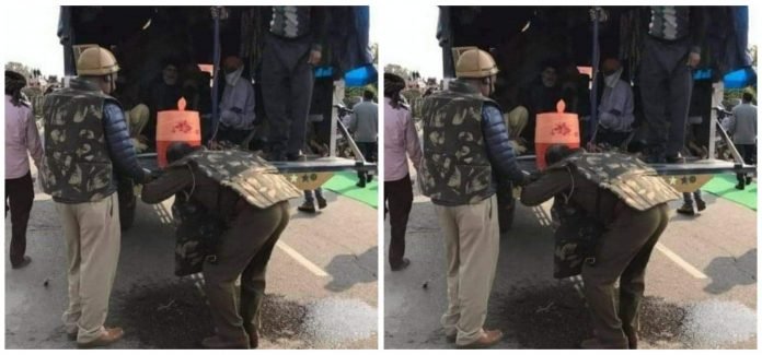 इस तस्वीर को शेयर करते हुए एक यूजर ने लिखा है कि “किसान का दिल देखो.. जो जवान किसान पर लाटी चला रहा हैं, रास्ता रोक रहा है, वह उसे भी पानी पिला रहा हैं। जय किसान।”